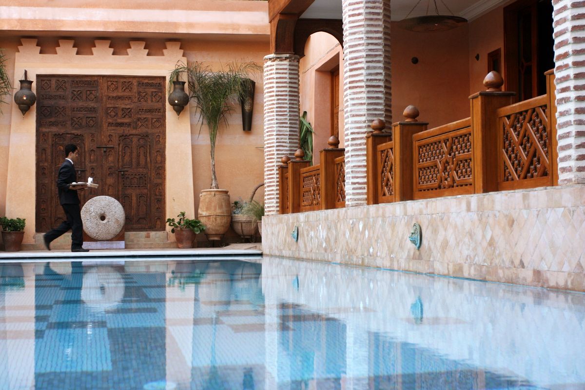 Escape from the hustle and bustle of Medina and relax in a beautiful garden. Olive trees, various plants, inviting couches, a nomad tent and a sunlit pool – these are the facilities that have been made ready for you at the famous La Maison Arabe.