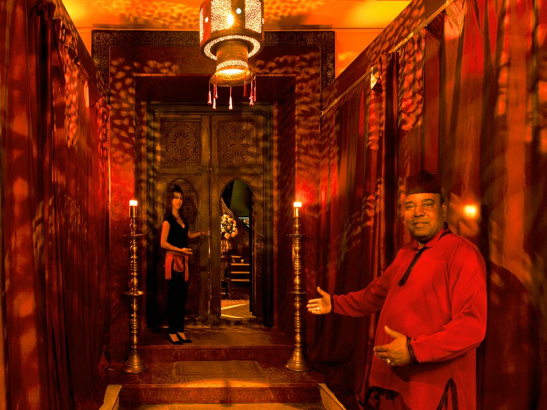 Frederic y su equipo prepararán cocina marroquí e internacional. Mientras usted disfruta de su cena, Gnaoua y un DJ lo van a entretener con música oriental y los sonidos de Al Andalous durante toda la noche y crearán el ambiente adecuado. Lo más destacado es un espectáculo de danza del vientre que se quedará grabado en su mente. Los bailarines profesionales lo encantarán con su coreografía y lo llevarán lejos en un cuento de hadas de las Mil y Una Noches.
